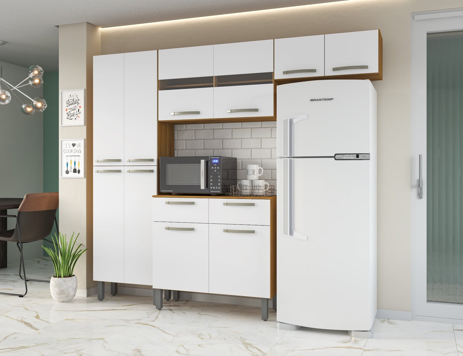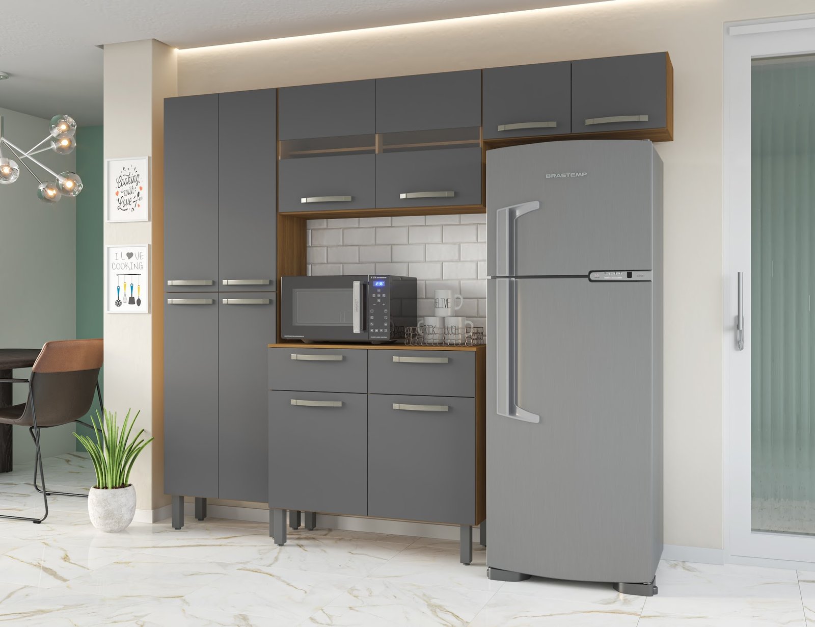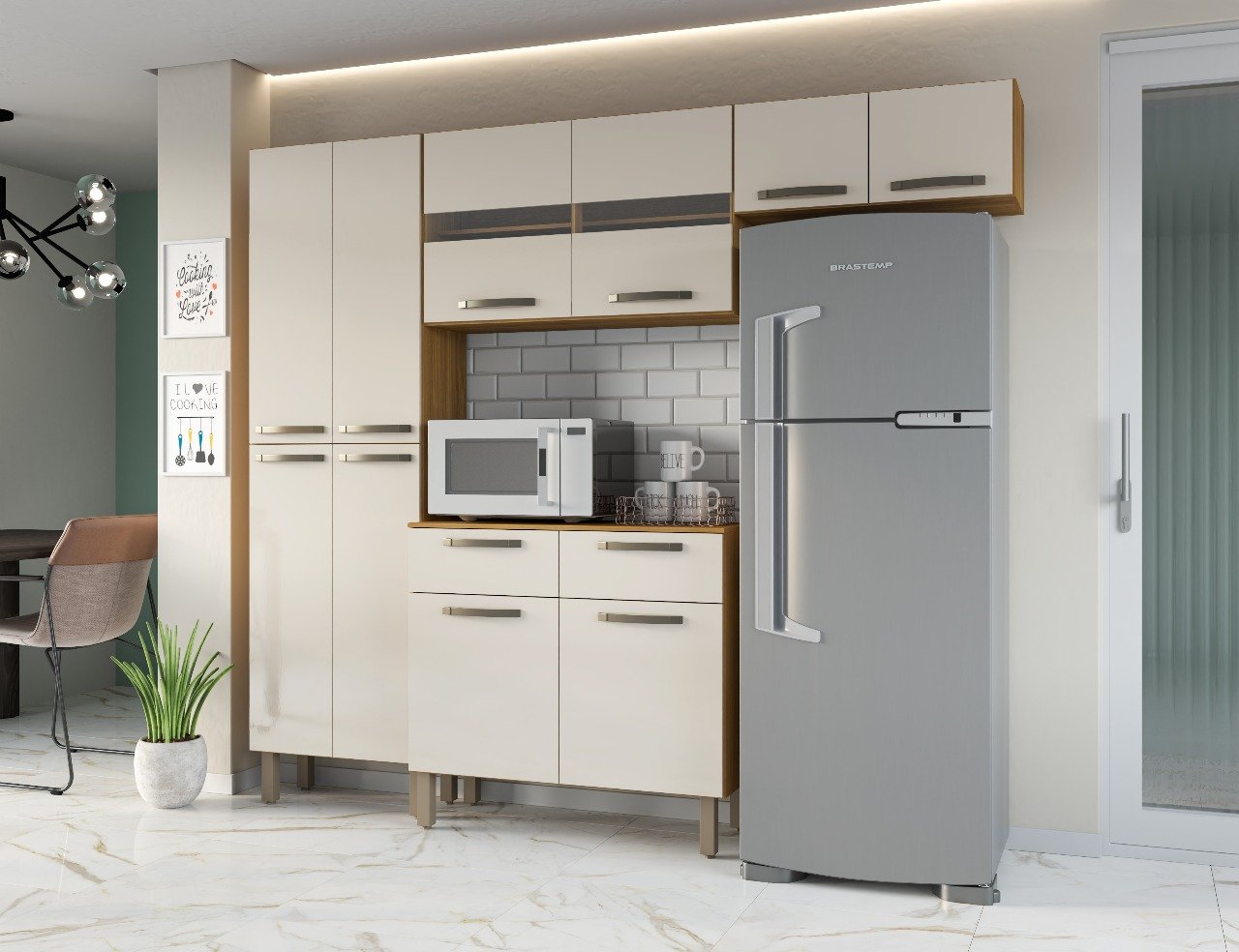 Possui duas portas com detalhe em vidro;