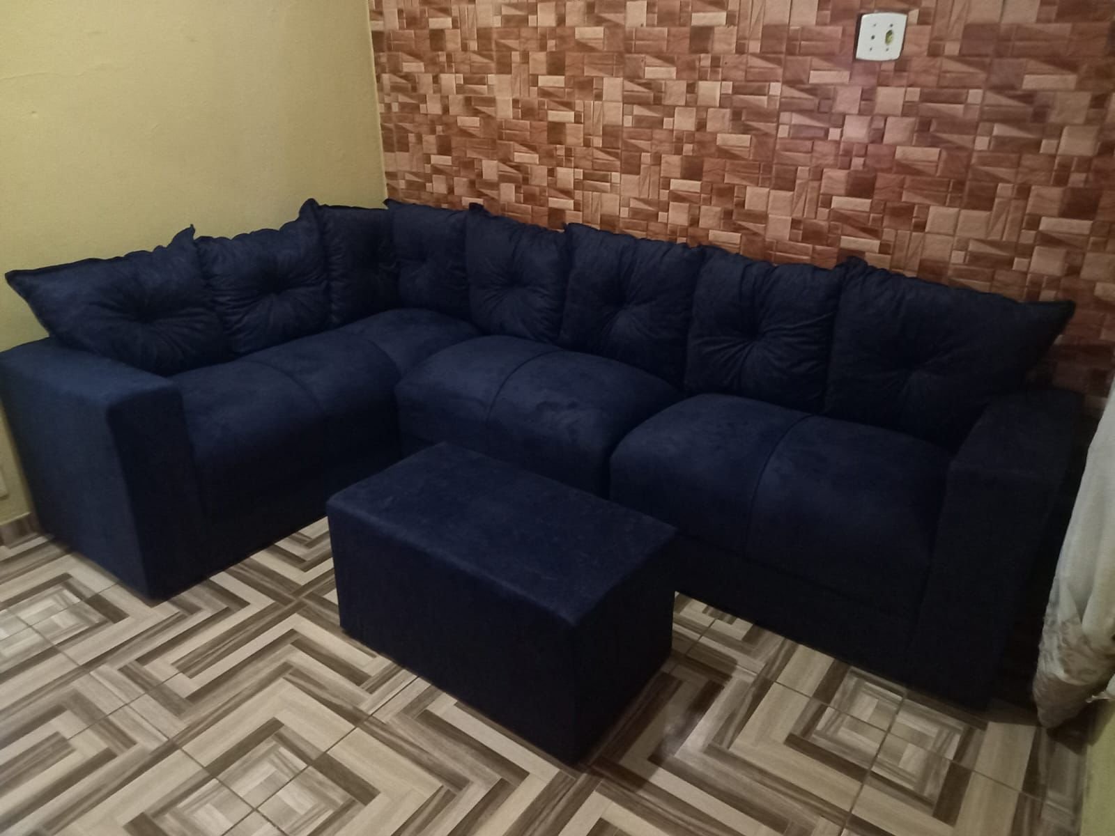 O revestimento é em Tecido Suede.